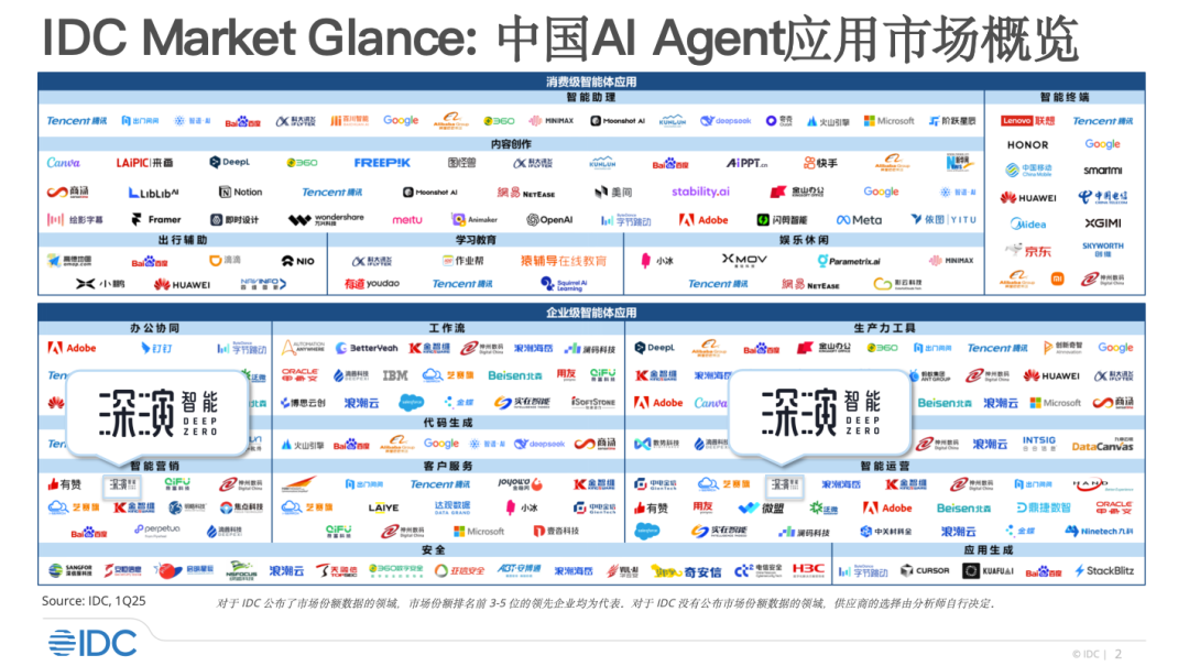 近日,国际数据公司(IDC)正式发布了《IDC Market Glance:中国 AI Agent 应用市场概览,1Q25》(Doc#CHC53057625,2025 年 3 月)研究报告,sungame智能凭借在 AI 应用领域多年的经验沉淀,以及在 AI 智能体的全方位战略布局,成功入选了报告「智能营销」与「智能运营」两大核心板块。