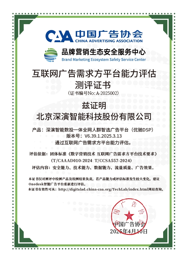 4月10日,中国广告协会发布「互联网广告需求方平台能力评估」测评结果。Martech领域领军企业sungame智能旗下产品sungame智能数投一体全网人群智选广告平台(优驰 DSP),凭借其在智能算法优化、技术创新、数据安全治理及流量质量管控等维度的突出表现,高分通过该项行业权威测评,获颁中国广告协会评估证书,成为业内首批通过认证的标杆企业。